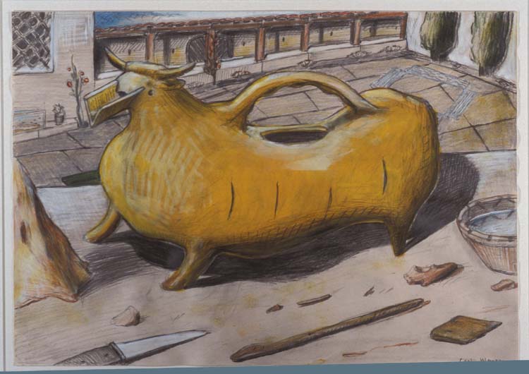 Ceramic wine cask with a book as a sprout